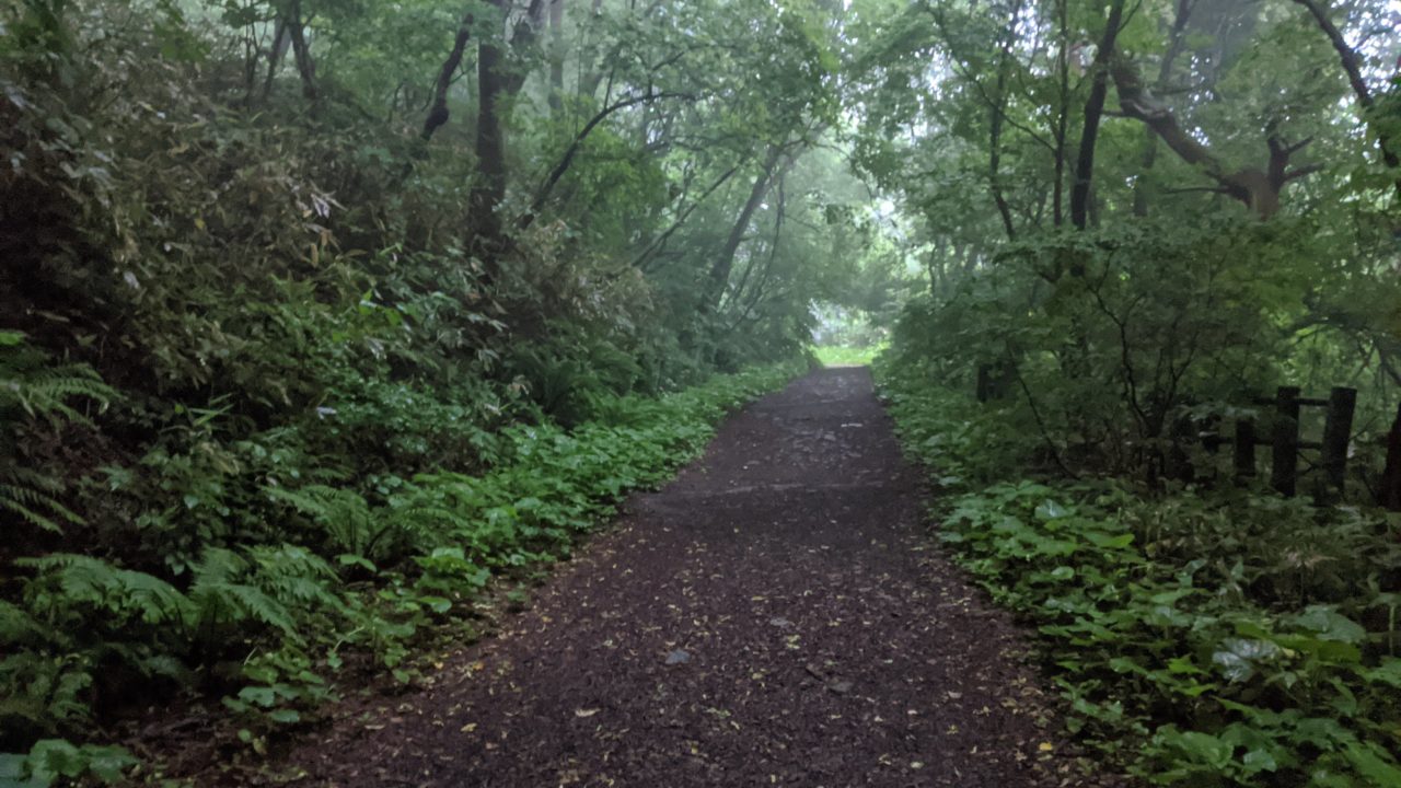 直前まで雨が降っていたので、泥だらけになる覚悟はしていたのですが全然そんなことなく、初心者にとっては易しさ溢れる山道でした。